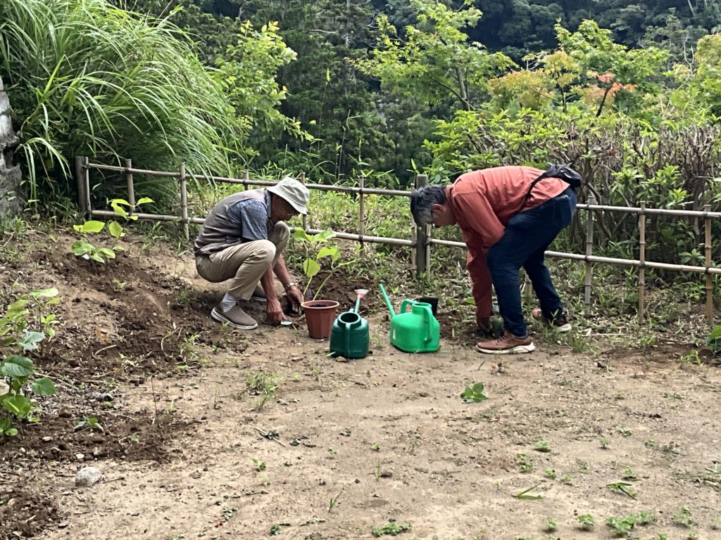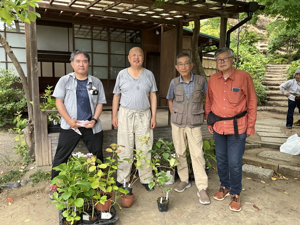 円覚寺龍隠庵さんに日本の自生ガクアジサイを植栽いたしました。鎌倉アジサイ同好会から3名、龍隠庵さんから3名が参加。昨年のヤマアジサイの試し植えがうまく定着しなかったので、ガクアジサイで今年はチャレンジし、現在龍隠庵さんで造成中のお庭が完成後に再度ヤマアジサイの植栽を計画しております。石川記